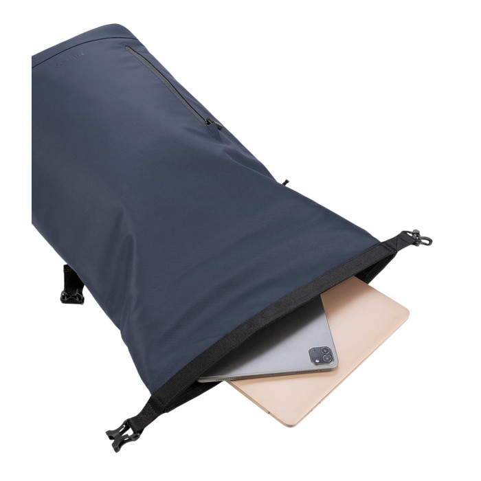 Рюкзак із застібкою roll-top для ноутбуків до 15.6" і MacBook до 16", виготовлений із переробленої водостійкої тканини з покриттям. Рюкзак Rollo має великий основний відділ, внутрішню кишеню для ноутбука, зовнішню кишеню для аксесуарів та м’які регульовані лямки, що забезпечують комфорт і зручність як для роботи, так і для відпочинку.