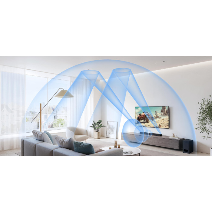 Sony HT-B600 — це саундбар нового покоління, який створює справжнє об’ємне звучання завдяки підтримці Dolby Atmos та DTS:X. Вбудовані динаміки з напрямом угору формують 3D-звукову сцену, а бездротовий сабвуфер додає глибоких басів. Центральний канал забезпечує чітку передачу голосів, а технологія S-Force PRO Front Surround заповнює простір кінематографічним звуком. Просте підключення через HDMI-ARC і Bluetooth дозволяє легко насолоджуватися контентом із будь-якого пристрою.