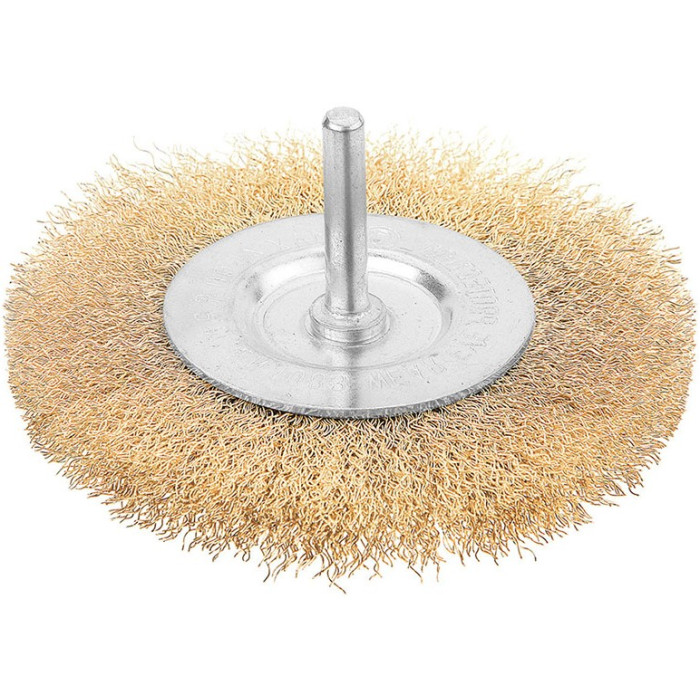 Щітка дискова Tolsen Профі 77543 діаметром 100 мм призначена для м'якого очищення поверхонь. Оснащена сталевим латунованим дротом Ø0,3 мм, що забезпечує делікатне видалення іржі, фарби та лаку. Має хвостовик 6,35 мм (1/4"), що підходить для дрилів і прямих шліфувальних машин. Максимальна швидкість – 4500 об/хв.