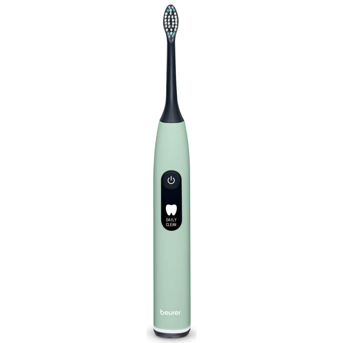 Beurer SC 50 Peppermint GP — звукова зубна щітка у м’ятному дизайні з п’ятьма режимами очищення, потужним акумулятором до 22 днів роботи та зручною магнітною станцією заряджання. Екоматеріали корпусу й щетинок, таймер, датчик тиску та індикація смайликами допомагають підтримувати щоденну гігієну ротової порожнини вдома і в дорозі.