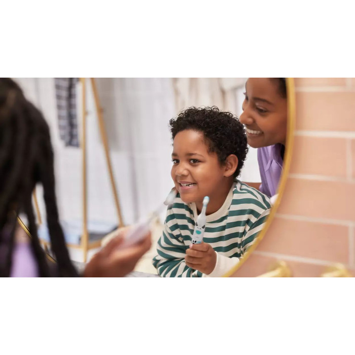 Допомагає запобігти карієсу в дітей. Допоможіть дітям виробити здорові звички чищення зубів за допомогою електричної зубної щітки Sonicare for Kids. Ця щітка дбайливо доглядає за зубами та яснами, що ростуть, і допомагає запобігти карієсу. Спеціальна версія щітки «Створіть власного домашнього улюбленця» має в комплекті веселі наклейки, щоб діти могли прикрасити її на свій смак. Технологія Sonicare допомагає запобігти карієсу. Лагідні імпульси глибоко проникають між зубами та вздовж лінії ясен. Тож поки діти ще вчаться чистити зуби, ефективність чищення не знижуватиметься.