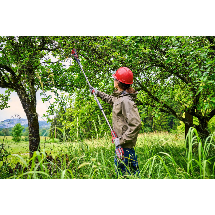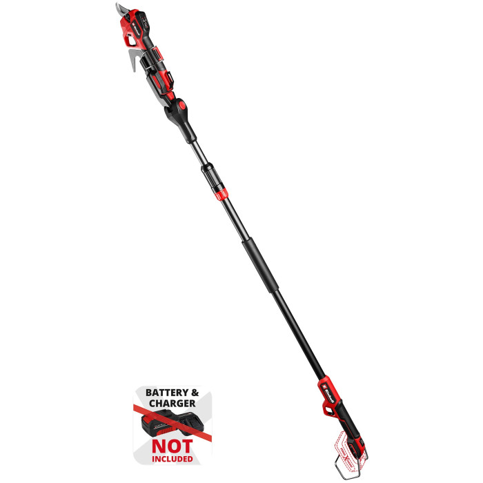 Акумуляторні секатори Einhell GP-LS 18/28 Li T BL-Solo – це універсальний інструмент із телескопічною ручкою (1–1,6 м) для обрізки гілок на висоті до 3,8 м. Оснащені безщітковим двигуном і лезами зі сталі SK5, секатори ріжуть гілки до 28 мм. Є вибір режимів (14/28 мм), регульований кут ріжучої головки (7 позицій), гачок для знімання гілок, блокування лез і кліпса для пояса. Сумісні з системою Power X-Change. Поставляються без акумулятора та зарядного пристрою.