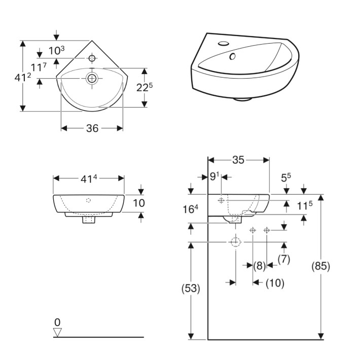 GEBERIT SELNOVA умывальник 41,4*16,4*41,2см, угловой, с отверстием под смеситель в центре, перелив видимый 500.326.01.1