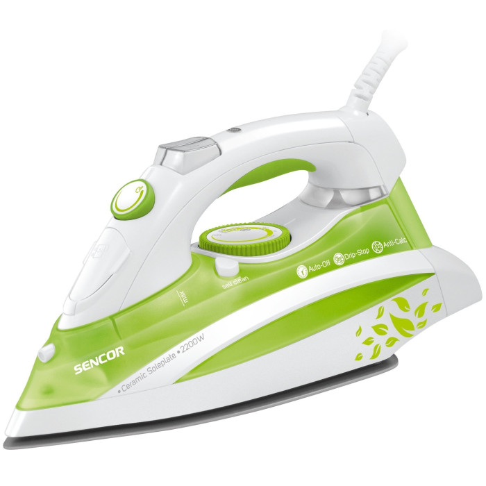 Электрический утюг Sencor SSI с керамической подошвой и мощностью в 2200 Вт. Утюг имеет легкозаполняемый прозрачный резервуар для воды (380мл), автоматическую регулировку температуры, систему самоочистки для удаления минеральных отложений, систему Anti-Calс, предупреждающую образование накипи в отверстиях. Функция Drip-Stop предупреждает попадание на одежду капель, которые оставляют пятна.