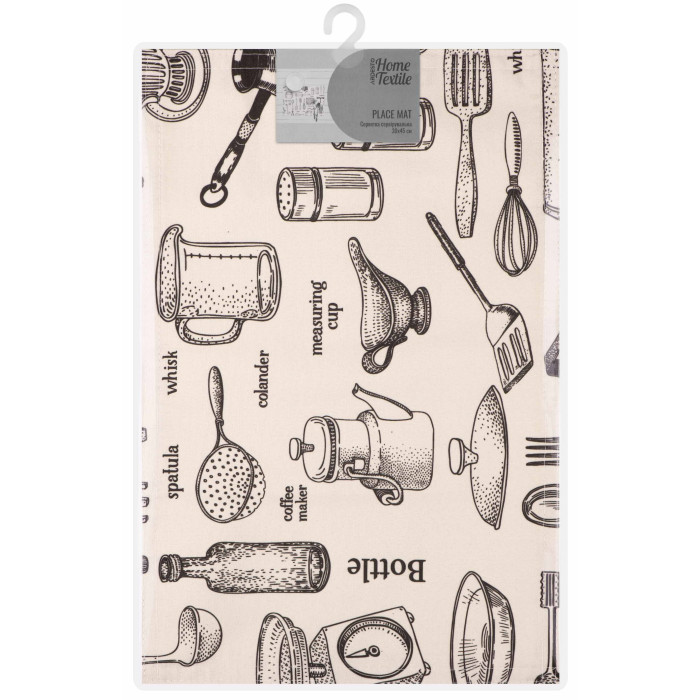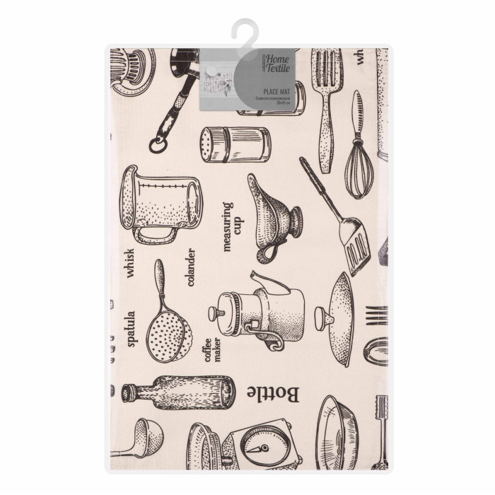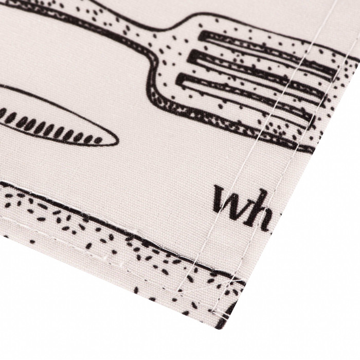 Сервірувальна серветка – це не лише засіб для збереження чистоти, але й елемент декору, який допоможе створити особливу атмосферу на столі. Розмір виробу у дизайні Kitchen становить 30 × 45 см. Виготовлено серветку з поліестеру (90 %) і бавовни (10 %), забезпечуючи тривалий термін слугування. Збереження властивостей виробу гарантує дотримання таких правил догляду: прання в пральній машині за 30 °C на делікатному режимі; сушіння в машині за низької температури; заборона відбілювання; заборона чищення будь-яким розчинником, крім трихлоретилену; прасування за температури до 110 °C.