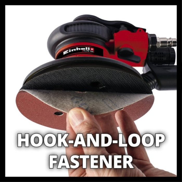 Ексцентрикова пневматична шліфувальна машина Einhell TC-PE 150, 10500 об/хв, 6.3 бар, 0.84 кг 4133330. Пневматична ексцентрикова шліфувальна машина Einhell TC-PE 150 полегшує багато різних робіт, таких як шліфування, загладжування, гравіювання або усунення нерівностей. Тому вона є популярним помічником для роботи вдома, в майстерні та в саду. Компактна ексцентрикова шліфувальна машина має діаметр шліфувального диска 150 мм. Вона підходить для шліфування деревини, заліза та пластику.