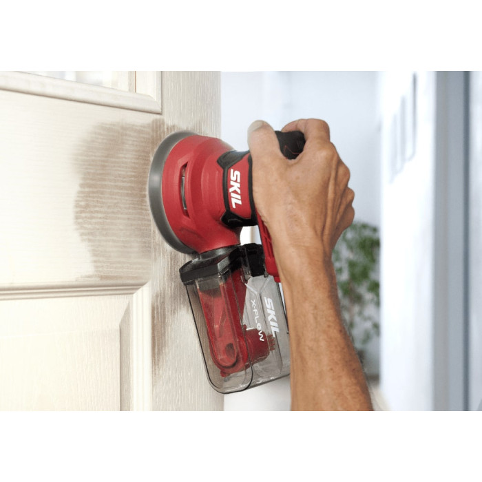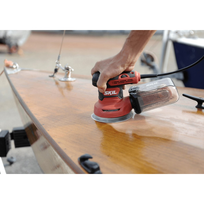 Ексцентрикова шліфувальна машина SKIL 7471 з потужністю 300 Вт є вашим ідеальним партнером для шліфування без зусиль як рівних, так і нерівних поверхонь. Завдяки надзвичайно компактній конструкції та системі балансування противаги «VRS», яка зменшує вібрації, цей інструмент забезпечує оптимальний контроль під час використання однією рукою. Завдяки ефективним ексцентриковим шліфувальним рухам ідеально підходить як для чистової обробки, так і для видалення значних об'ємів матеріалу. А завдяки функції попереднього вибору змінної швидкості швидкість може бути підібрана відповідно до завдання.