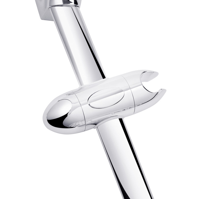 Штанга для душу Kroner KRM - C750 з полицею виготовлена з якісних матеріалів. Завдяки хромованому покриттю має гарний зовнішній вигляд. Виріб кріпиться на стіну за допомогою кріплень, які входять в комплектацію. Для зручності в комплекті передбачений кронштейн для ручного душу з можливістю регулювання лійки по висоті та полиця. Така модель стійки відмінно доповнить сучасний дизайн ванної кімнати.