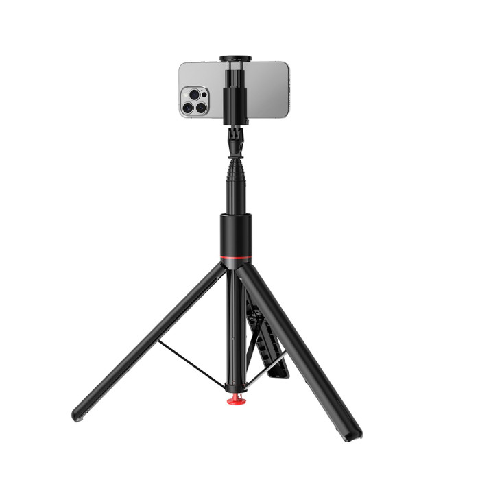 Телескопічна алюмінієва штанга дозволяє знімати з висоти до 1,77 м — більше свободи для контенту.2 В 1: CЕЛФІ-ПАЛИЦЯ ТА АВТОМАТИЧНИЙ ШТАТИВ