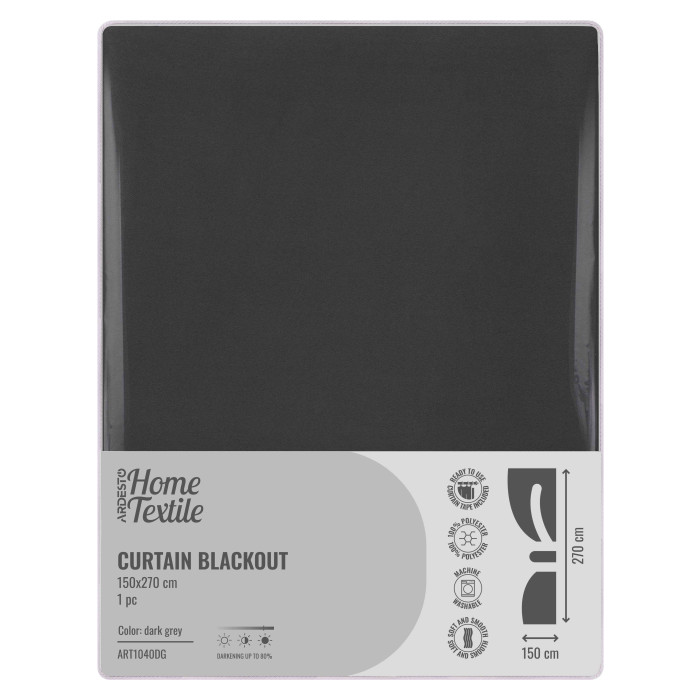 Штора ARDESTO 150х270см, блекаут, 100% поліестер, сірий темний