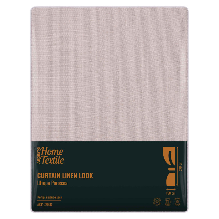 Штора ARDESTO 150х270см, рогожка, 100% поліестер, сірий світлий