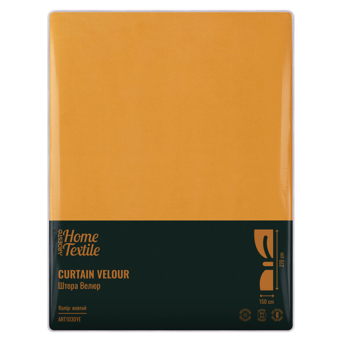 Штора ARDESTO з велюру жовтого кольору є елегантним і вишуканим елементом декору для віконного простору. Виготовлена з довговічного 100 % поліестеру штора має гладеньку текстуру, щільна, важка та добре захищає від сонячних променів. Розмір виробу становить 150 × 270 см.