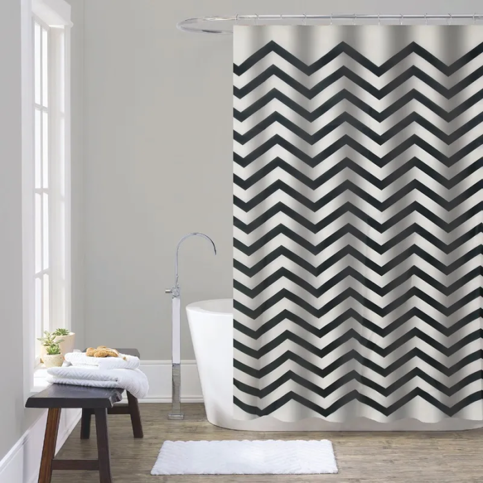 Штора для ванної з поліестеру Zerix SCT-007-180x180 (Візерунок чорно-білий) (ZX4987)