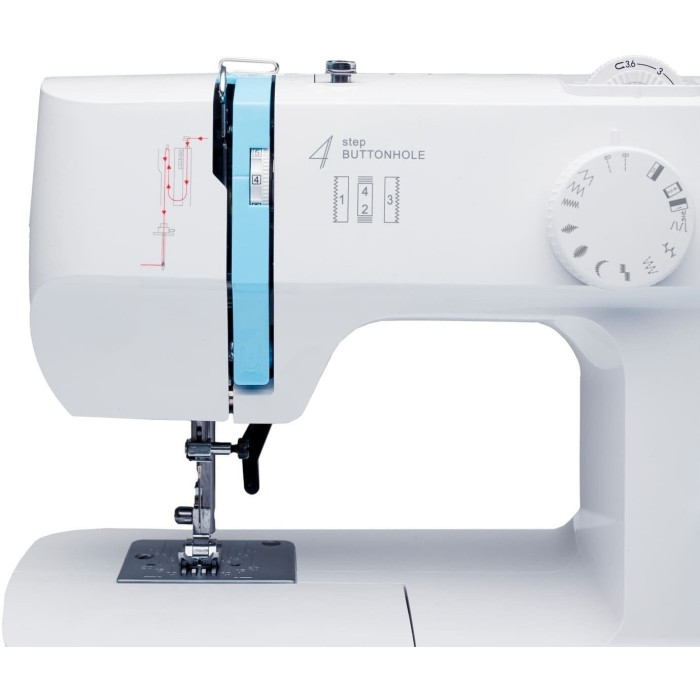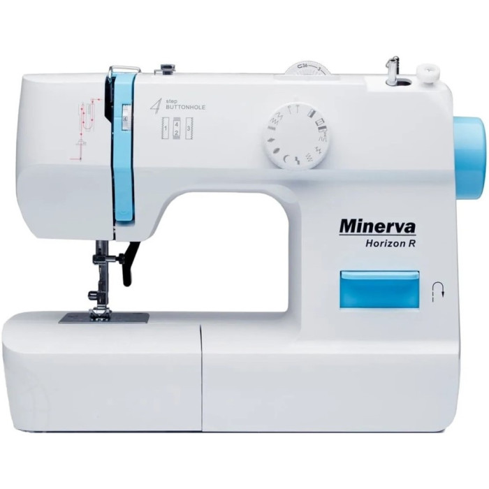 MINERVA Horizon R - проста і зручна модель швейної машинки компактної серії, оснащена класичним вертикальним човниковим пристроєм і яскравим світлодіодним підсвічуванням. Призначена для шиття і ремонту одягу. Виконує 13 видів строчок.