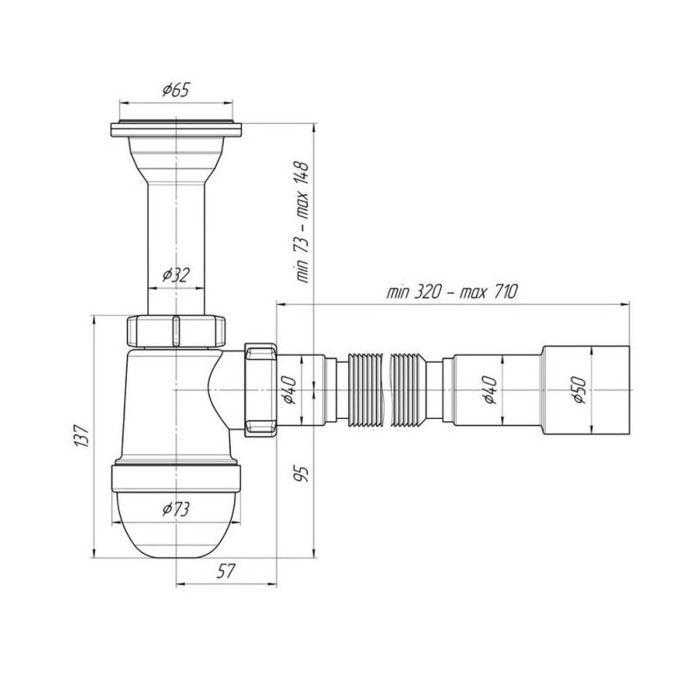 Сифон для раковини ANIplast з литим випуском 64 мм, з гнучкою трубою 40х40/50 мм C2015EU