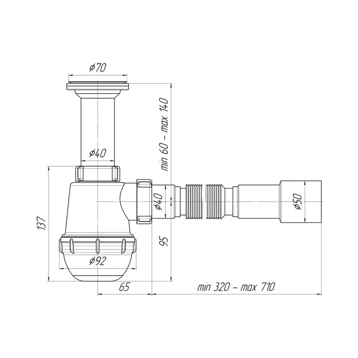 Сифон, литий випуск, гофротруба, нержавіюча сітка