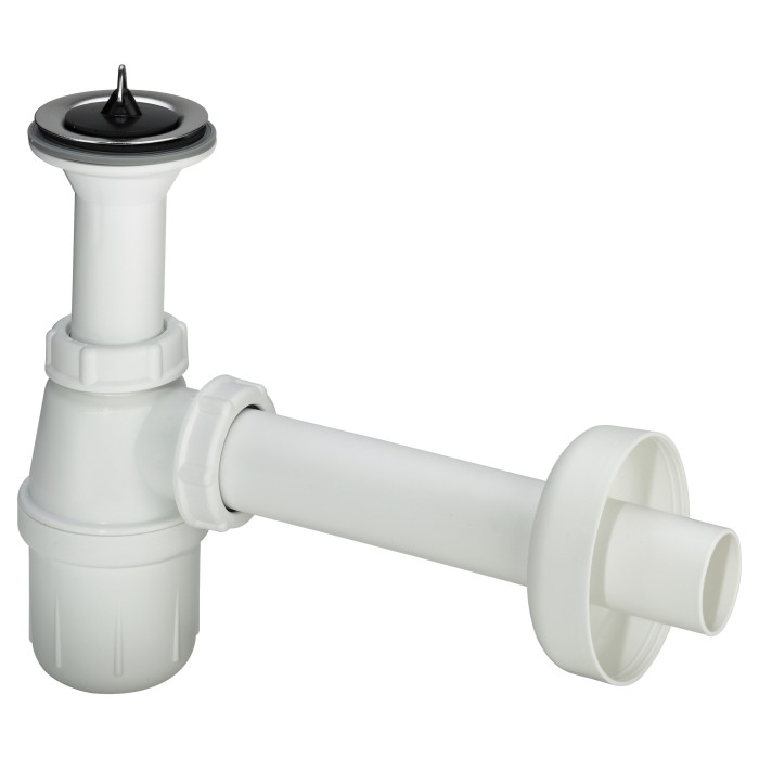 Сифон для умывальников, пластик, комплектация : декоративная розетка Ø 50 мм, верхняя розетка из нержавеющей стали, пробка