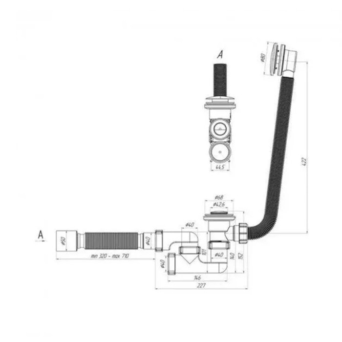 Сифон для ванної ANIplast з засувкою, тарілка зовні 375х40x40/50 EC055GSEU