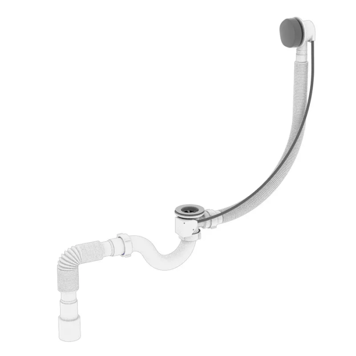 Сифон для ванної кімнати Zerix SV-01-B прямоточний з переливом "напівавтомат" (трос 580 мм) (ZX4959