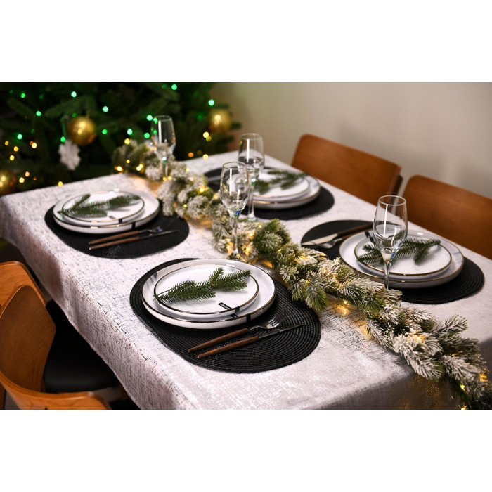 Скатертина ARDESTO Shine додасть затишку та створить атмосферу свята. Практичний виріб надійно захистить стіл від різноманітного забруднення. Виготовлено скатертину зі 100 % поліестеру, забезпечуючи довговічність використання. Розмір скатертини сріблястого кольору становить 120 × 140 см. Під час догляду виріб не мнеться та не сідає, а дотримання нескладних правил збереже надовго гарний вигляд: прання в пральній машині за 30 °C на делікатному режимі; сушіння в машині за низької температури; заборона відбілювання; заборона чищення будь-яким розчинником, крім трихлоретилену; прасування за температури до 110 °C.