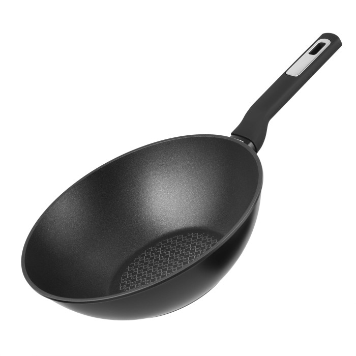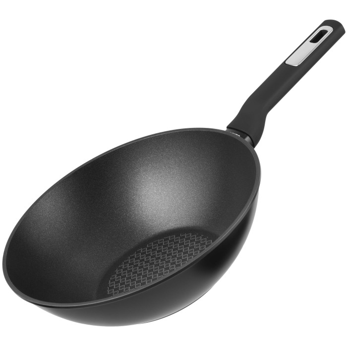 Сковороду ВОК Gemini Lucca створено для тих, хто готує з розмахом і цінує продумані деталі. Кований алюміній забезпечує рівномірне нагрівання, а товсті стінки (2,5 мм) і дно (2,6 мм) зберігають тепло протягом усього процесу приготування. Діаметр 28 см і висота стінок 8,5 см відкривають простір для обсмажування, тушкування та експериментів із різними кухнями світу. Протипригарне покриття PFLUON з насічкою складається з двох шарів, що сприяє легкому перемішуванню інгредієнтів без прилипання. Бакелітове руків’я з покриттям Soft-touch зручно лежить у руці та залишається прохолодним. Чорний колір додає стриманого стилю. Сумісна з усіма типами плит. Для збереження властивостей покриття рекомендовано ручне миття.