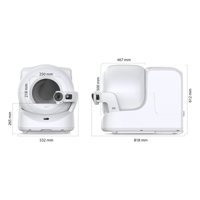 Вбудована камера дозволяє спостерігати за станом лотка та котом у реальному часі через мобільний додаток PETKIT. Підтримка мобільного додатку для налаштувань, моніторингу та отримання сповіщень. Покращена система фільтрації з активованим вугіллям ефективно нейтралізує запахи. Оснащений інфрачервоними сенсорами, які зупиняють роботу пристрою, якщо кіт знаходиться всередині. Для котів будь-яких розмірів, включаючи великі породи.ТЕХНІЧНІ ХАРАКТЕРИСТИКИВнутрішній простір має об'єм 75 літрів, що забезпечує комфорт навіть для великих котів. Максимальне навантаження До 20 кг. Захист від води PX5, для легкої чистки зовнішньої поверхні. Працює від мережі 220 В, з підтримкою резервного живлення через акумулятор. Високоякісний пластик, стійкий до подряпин і деформації.ПЕРЕВАГИЛоток підтримує чистоту без вашої участі. Фіксує частоту відвідувань, дозволяючи відстежувати стан здоров’я кота. Великий контейнер для відходів дозволяє рідше проводити його очищення. Сучасний вигляд підходить для будь-якого інтер'єру. PETKIT Purobot Ultra with Camera — це ідеальний вибір для власників, які хочуть забезпечити своєму улюбленцю найвищий рівень комфорту та гігієни.