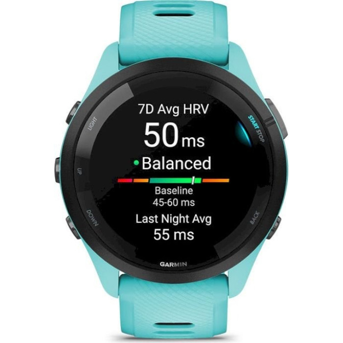 Смарт-годинник Garmin Forerunner 265 Black Bezel with Aqua Case and Aqua/Black Silicone Band (010-02810-52)