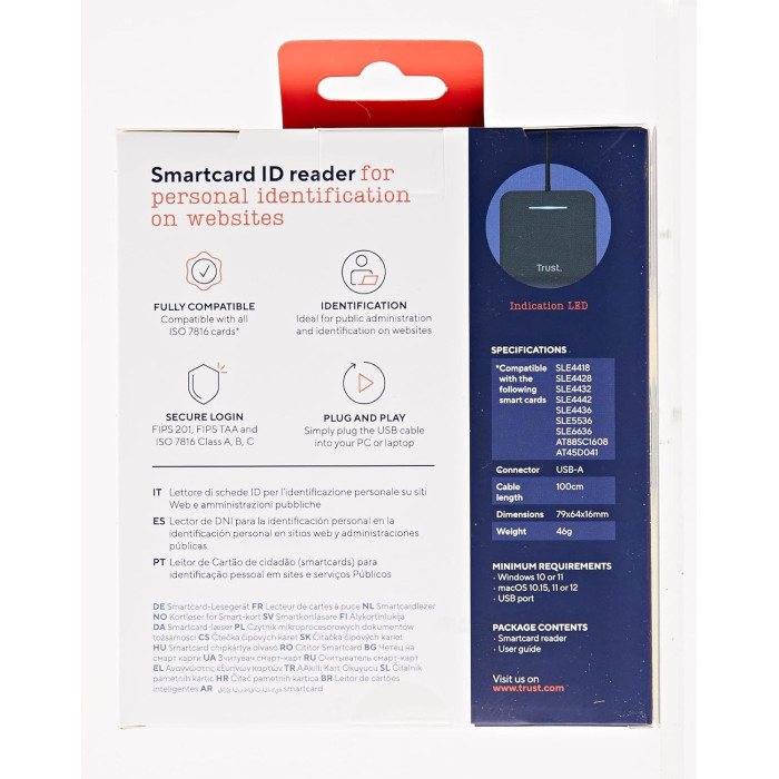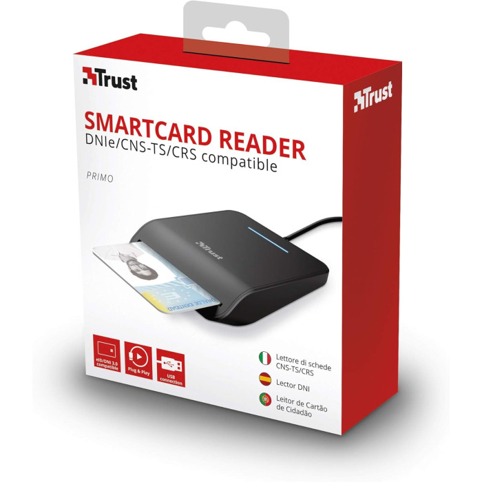Смарт-кардрідер Trust Primo 23890 — це надійний пристрій для зчитування смарт-карт, призначений для безпечної ідентифікації на вебсайтах та в державних установах. Смарт-кардрідер Trust Primo 23890 — це зручний та надійний пристрій для зчитування смарт-карт, ідеальний для безпечного входу на сайти, використання електронного підпису або роботи з іншими системами ідентифікації.