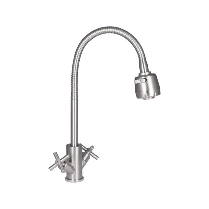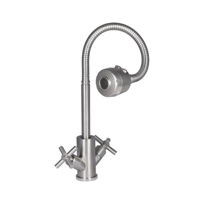 Смеситель для кухни Lidz Wind 013F4 с двумя вентилями и гибким изливом в никелированном исполнении сочетает в себе классический дизайн и современное удобство. Два вентиля позволяют легко регулировать температуру и напор ... Читать далее...