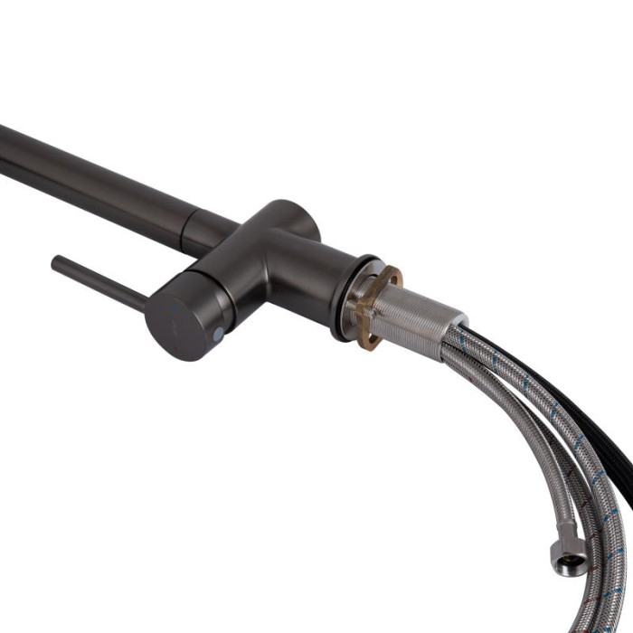 Смеситель для кухни Qtap Rozcesti с выдвижным изливом с подключением для питьевой воды QTROZ367GMB45942 Gunmetal Black PVD