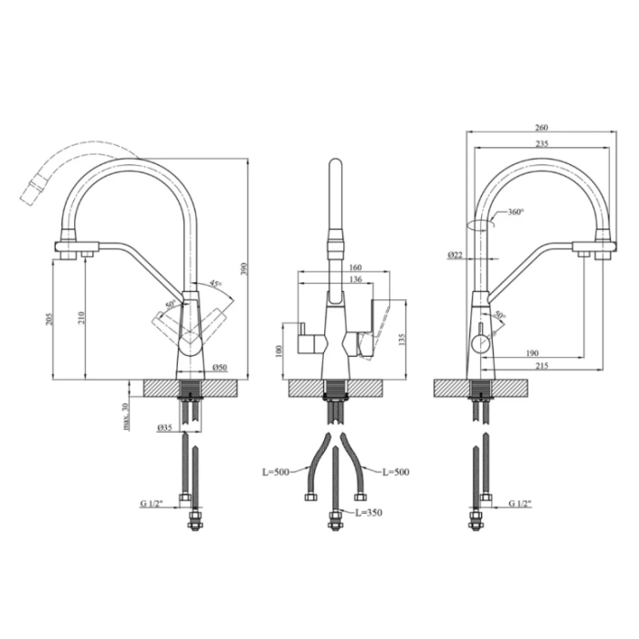 Модель призначена для одночасного підключення до водопроводу та фільтру, забезпечуючи можливість використання як звичайної, так і питної води. Це зручне рішення для підтримки здорового способу життя.