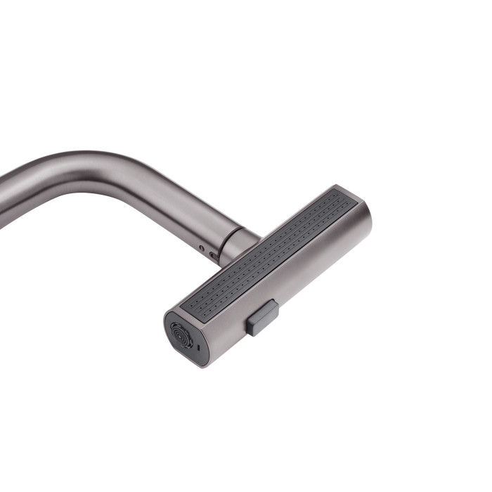 Він пропонує три режими подачі води, вигадані для різних завдань. Режим "водоспад" забезпечує м'який потік води, ідеальний для миття фруктів та овочів. Режим "потік" підходить для щоденного прибирання та миття рук, забезпечуючи рівномірний потік води. Режим "розпилення" пропонує високий та потужний тиск води для швидкого видалення мийного засобу або забруднень. Перемикання між цими режимами відбувається зручним способом: для режиму розпилення достатньо затиснути кнопку на лійці, а для "водоспаду" - повернути лійку на 90 градусів.