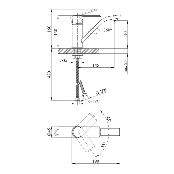 Змішувач, гнучка підводка, кріплення, інструкція.