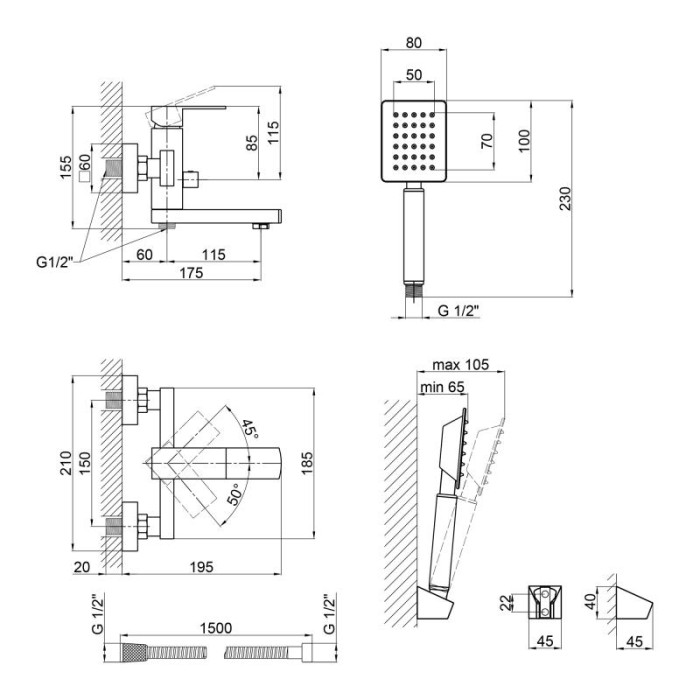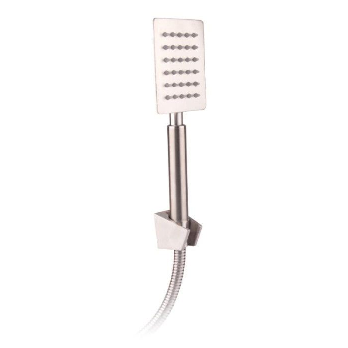 Пищевая нержавеющая сталь AISI 304. Душевой шланг с функцией анти-скручивания. Габариты ручной лейки (ВхШ): 100х80 мм. Кронштейн с двумя положениями для ручной лейки. Количество сопел в ручной лейке: 30 шт. Длина душевого шланга - 1500 мм.