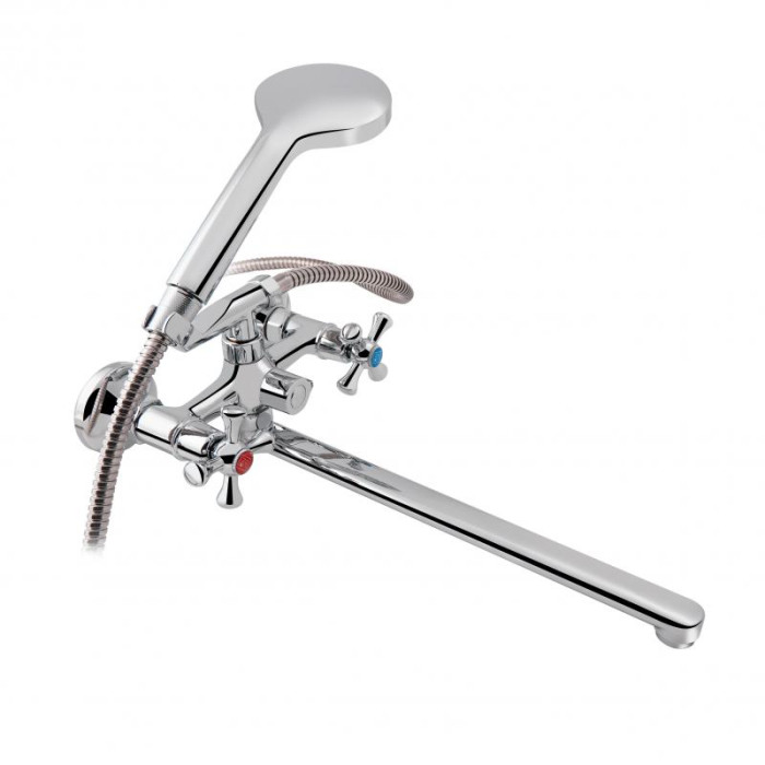 Смеситель для ванны Lidz (CRM) 75 21 140 с длинным поворотным изливом выполнен с интегрированным шланговым подсоединением, укомплектован душевым шлангом и лейкой. Для включения потока воды предусмотрено два вентиля с нанесенными маркировкой Х+Г воды и фирменными логотипами производителя. Для переключения на душ - поворотный дивертор. Настенный монтаж осуществляется с помощью крепежных деталей, которые входят в комплект. Круглые розетки скроют следы установки на отделке.