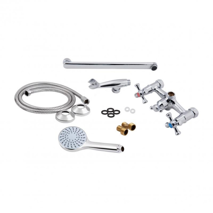 Смеситель, лейка для ручного душа, душевой шланг, крепежи.