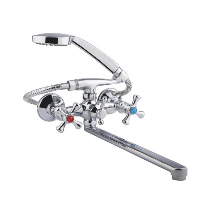 Смеситель для ванны Lidz Lamb 143 с поворотным изливом двухвентильный (c душевым гарнитуром) LDLAM143CRM22143 Chrome