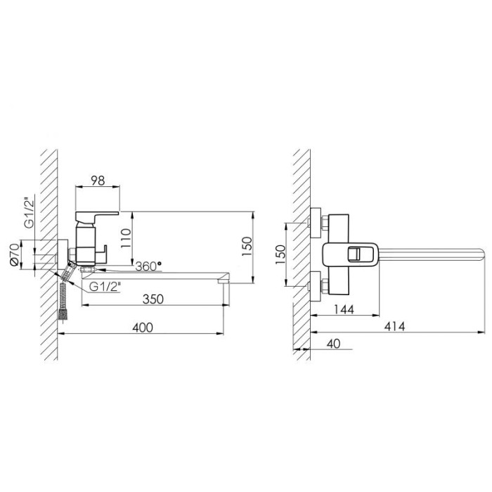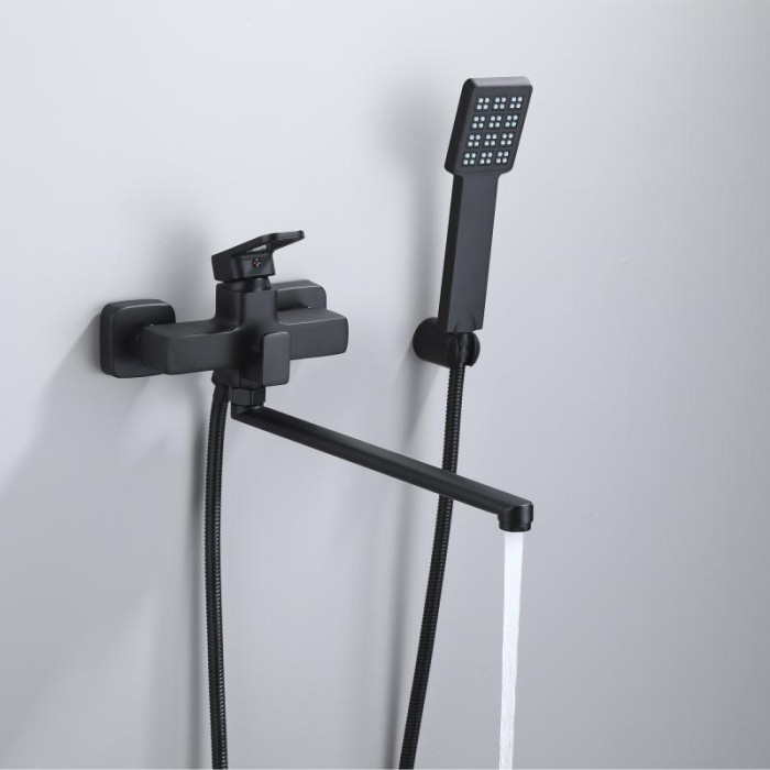 Смеситель для ванны Lidz Wawel 005 с поворотным изливом (c душевым гарнитуром) (k35) LDWAW005BLA45394 Black