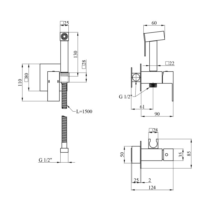 Набір для гігієнічного душу прихованого монтажу зі змішувачем Kroner KRP Edelstahl Kubus - SCH053