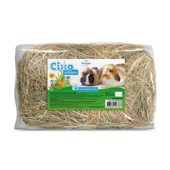 Сіно необхідне для всіх гризунів, щоб забезпечити правильне травлення та постійне сточування зубів. Сіно «Польовий мікс» має привабливий запах, покращує травлення та містить лікарські трави, що мають антисептичну та імуностимулюючу дію.