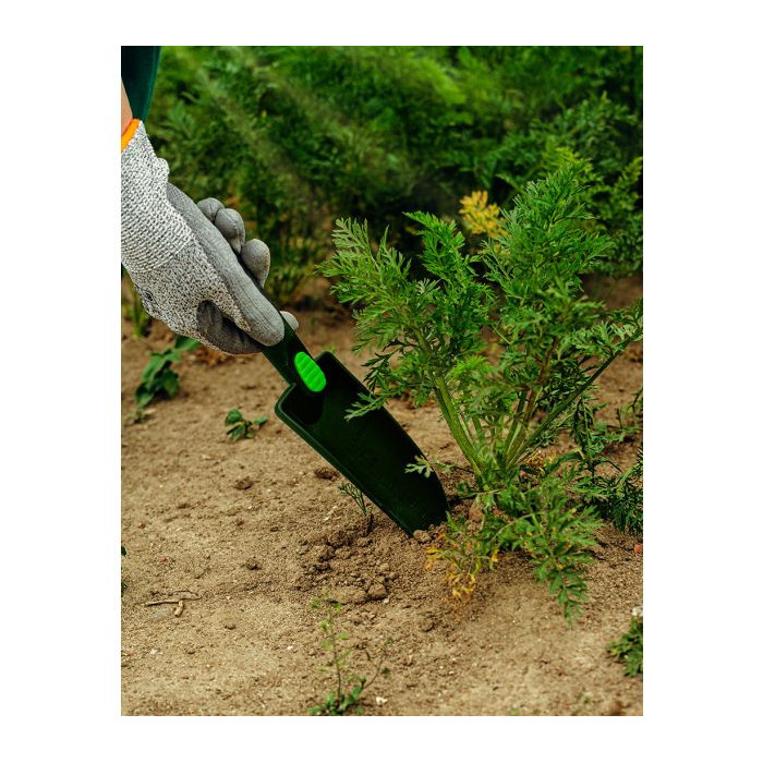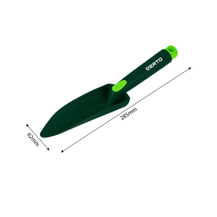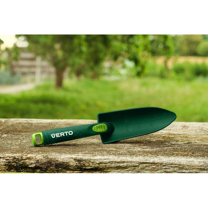 Садовий совок Verto 15G413 — компактний і легкий інструмент для догляду за клумбами, квітниками чи горщиками. Довжина 28.4 см і вага всього 65 г роблять його зручним у використанні навіть тривалий час. Ідеально підходить для пересадки рослин та роботи з ґрунтом.