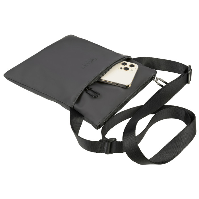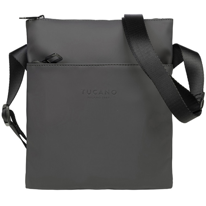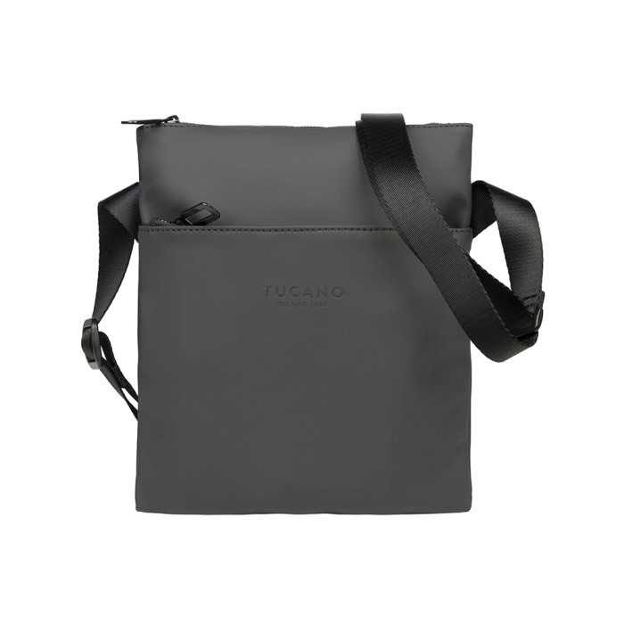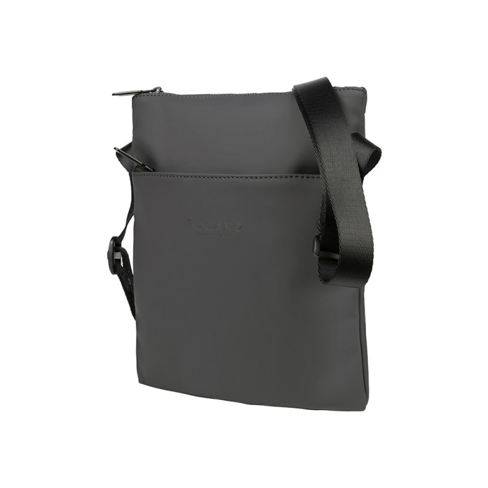 Компактна повсякденна сумка через плече Tucano Gommo Shoulder Bag. Сумка через плече Gommo Shoulder Bag тонка, має зовнішню кишеньку для аксесуарів і регульований плечовий ремінець. Матеріал сумки виготовлено з прогумованого матеріалу, а також внутрішньою системою захисту від радіо-випромінювання і здатна запропонувати значний захист від електромагнітних хвиль, які випромінюють смартфони.