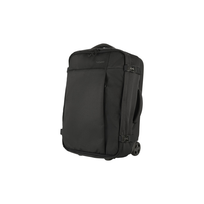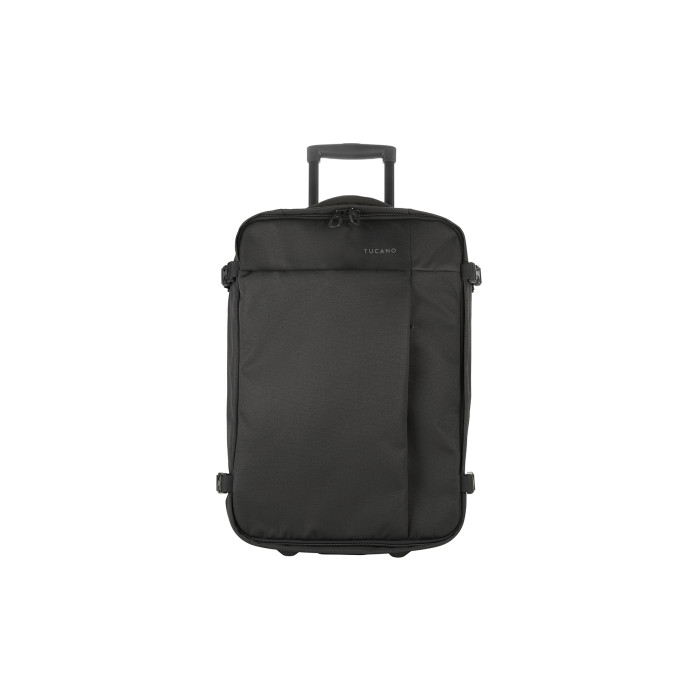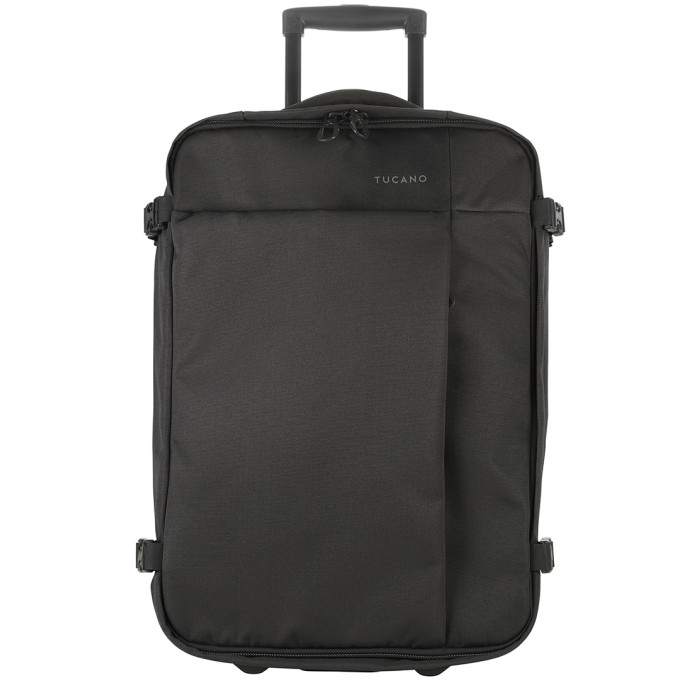 Валіза двоколісна Tucano Tugo S Trolley стане кращим помічником у подорожах. Вона вироблена із текстилю чорного кольору, тканина міцна і водовідштовхувальна. Валіза оснащена безшумними та зручними колесами, а окрім основної телескопічної ручки, має додаткову - зверху та збоку. Всередині є один великий відділ і 2 маленькі додаткові кишені. Вага 2,3 кг, об’єм 34 л.