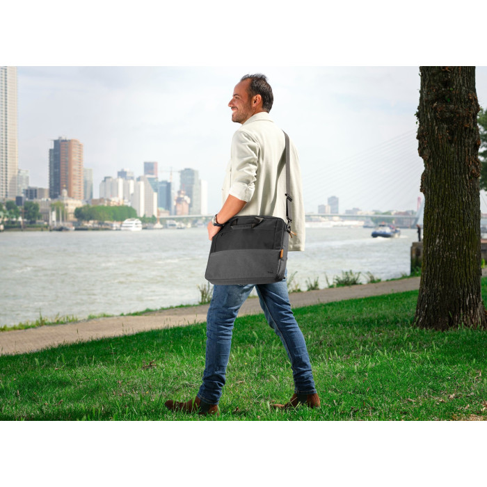 Lisboa може здатися просто професійною сумкою для перенесення ноутбука, але це набагато більше. Завдяки тканині, виготовленій із 8 перероблених пляшок, ця сумка допоможе вам доставити ноутбук туди, де він має бути, і водночас допоможе планеті.