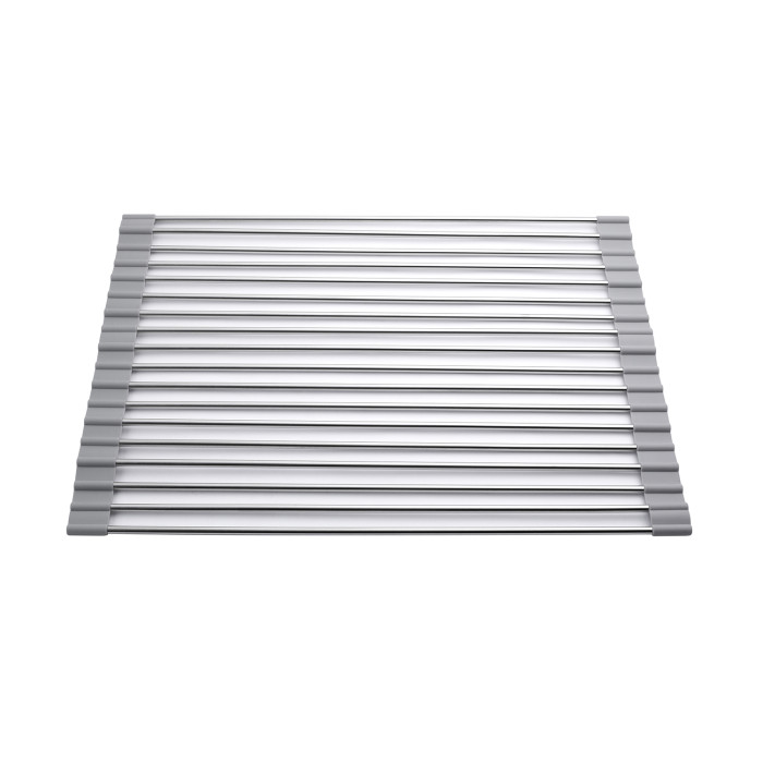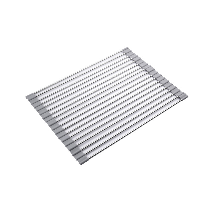 Сушарка-килимок для посуду Kroner KRP Matte - GRA4333-2 виконана з харчового силікону та нержавіючої сталі. Сушіння такого типу називається трофлексом, встановлюється поверх миття або на стільницю. Важливою перевагою цього типу сушіння є те, що вона завжди під рукою і на неї можна складати не тільки посуд, але, наприклад, і мити овочі, а також можна використовувати для розміщення гарячих каструль і сковорідок. Сушіння скочується в рулон і не займає багато місця, а при необхідності швидко розкладається для сушіння посуду або овочів.