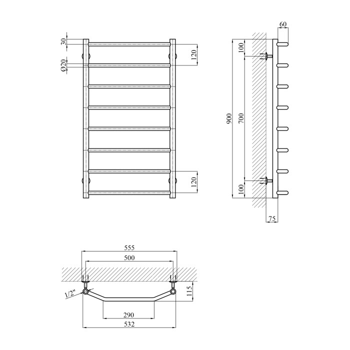 Сушарка для рушників водяна Kroner KRP Diva WT900x500-8