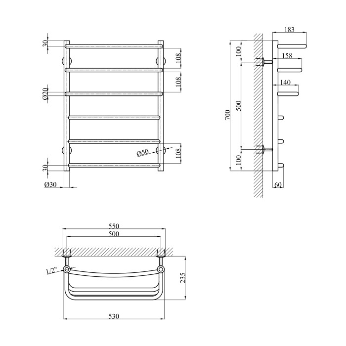Кількість секцій: 6 горизонтальних перекладин, які забезпечують достатньо місця для рушників.