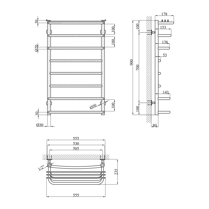 Кількість секцій: 8 горизонтальних перекладин, які забезпечують достатньо місця для рушників.