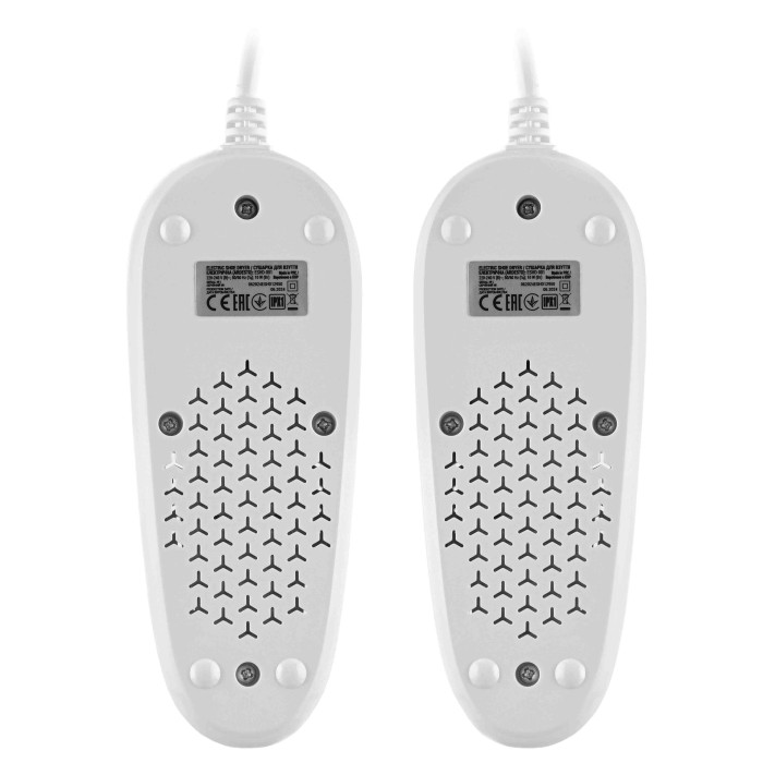 Електрична сушарка ESHD-001 забезпечить зручний і ефективний догляд за взуттям, рівномірне висушуючи його всією поверхнею корпусу. Передбачено використання для взуття розміром 35-45 (EU). Вмикають сушарку натисканням на кнопку, для з’єднання з мережею наявний шнур завдовжки 1,45 м.