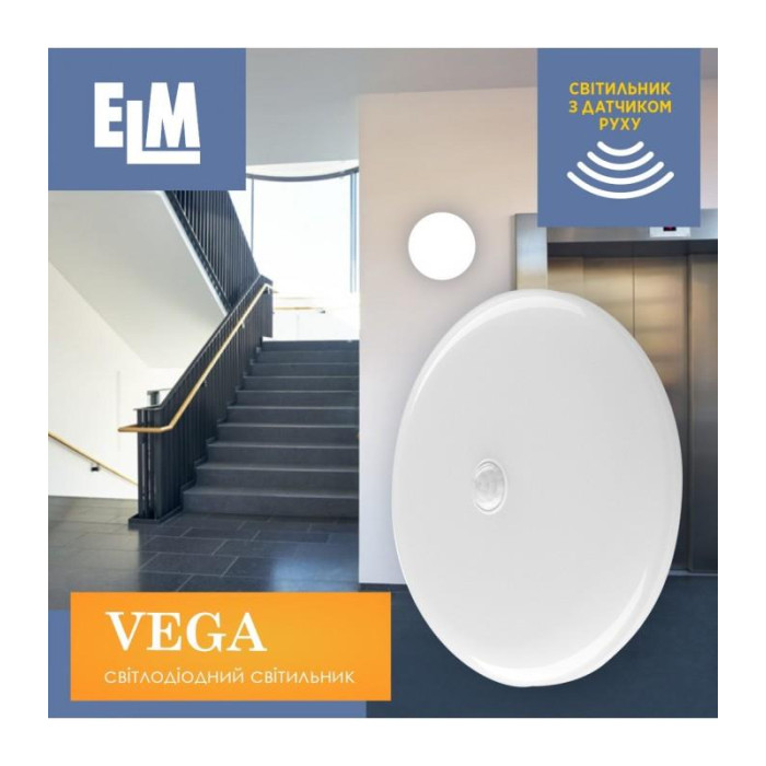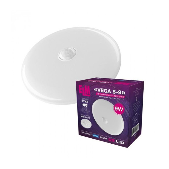 Світильник настінно-стельовий світлодіодний накладний з датчиком руху ELM VEGA S 9W 6500К IP20 (26-0124)